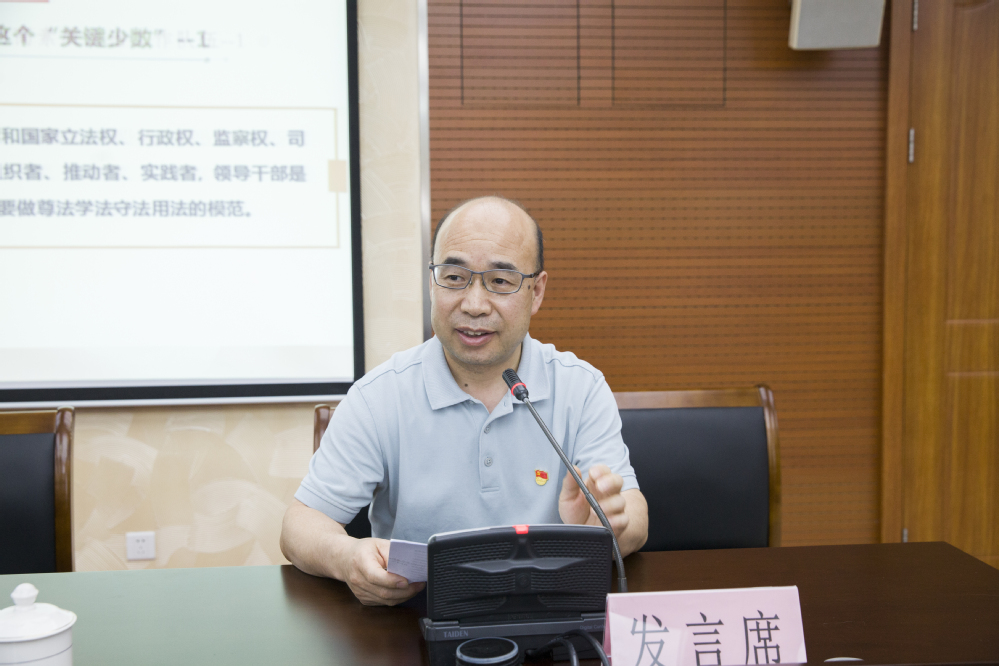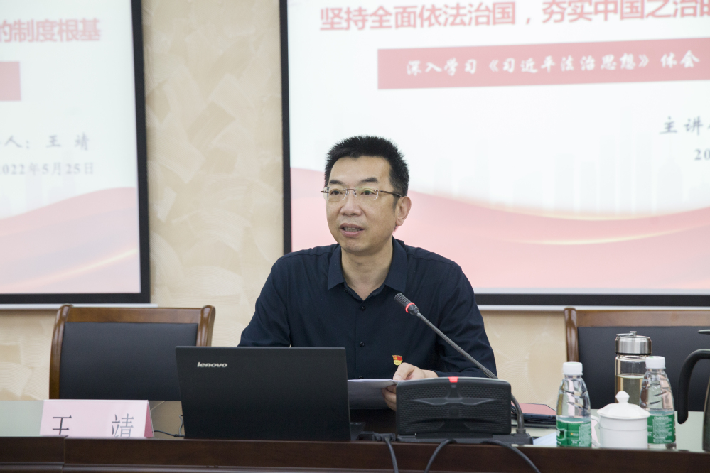 學習會上,校黨委委員、黨委宣傳部部長王靖教授圍繞習近平法治思想作了《堅持全面依法治國,夯實中國之治的制度根基》專題輔導報告,深入解讀了習近平法治思想的實踐邏輯和核心要義。機關黨工委書記張想林作重點發言,結合學校工作交流了學習習近平法治思想的心得體會。