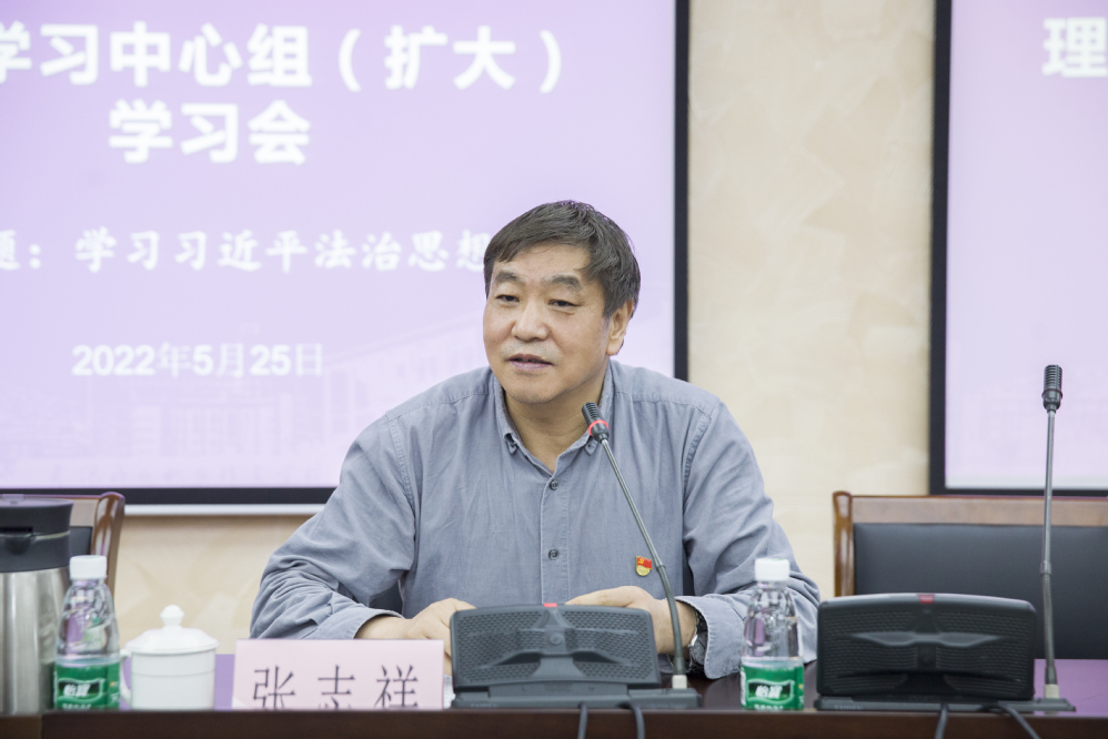 5月25日,學校黨委理論學習中心組(擴大)在行政樓215會議室召開學習會,專題學習習近平法治思想。校黨委書記張志祥主持會議,全體黨委委員、各職能部門負責人、機關黨工委及各黨總支書記參加學習。